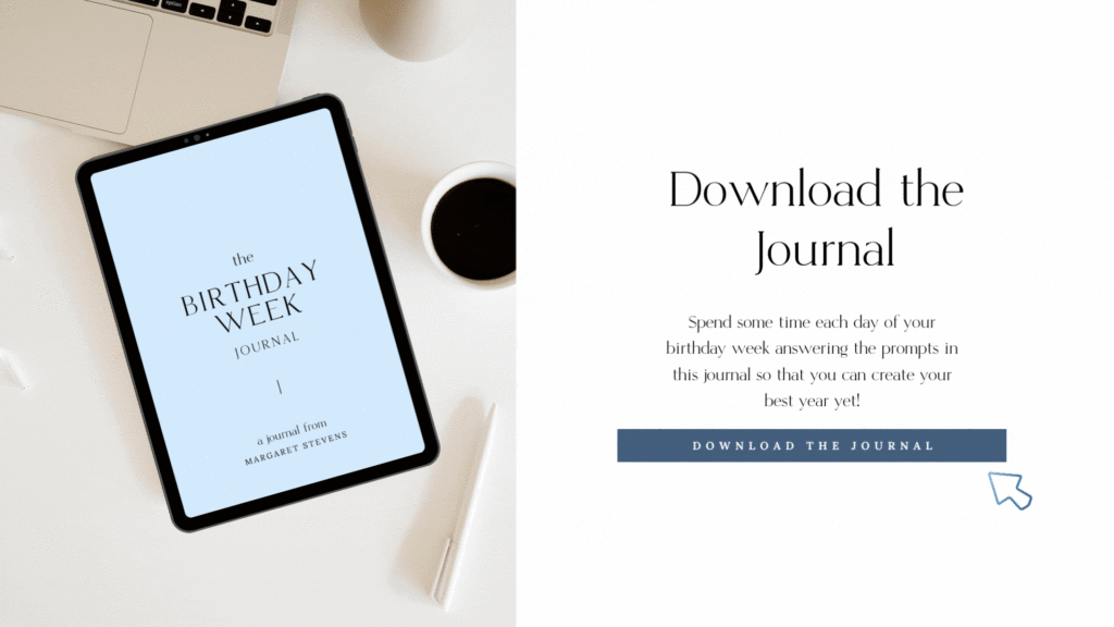 I created this birthday journal so you can use it for yourself to map out your best year yet and hold yourself accountable (you can use it in your birthday week or decide that TODAY is the day to start a new year!)